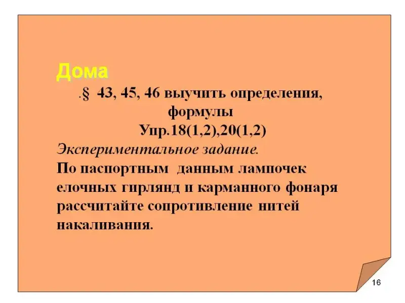 По паспортным данным лампочек елочных гирлянд и карманного фонаря рассчитайте сопротивление нитей накаливания.