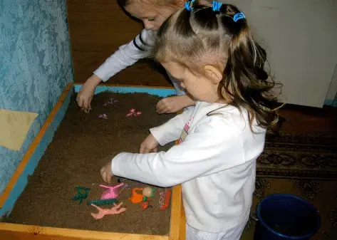 У детей раннего возраста еще не сформировалась ролевая игра, в этом возрасте ребенку свойственно манипулировать с песком. Поэтому на занятиях преобладают игры: прятанье предметов, пересыпание, лепка, отпечатки (рук, формочек, колес), построение горок, ямок, скатывание с них различных предметов. Игра в этом возрасте ритмична, повторяема в своем сюжете и это является необходимым фундаментом для формирования образной игры, свойственной дошкольному возрасту.