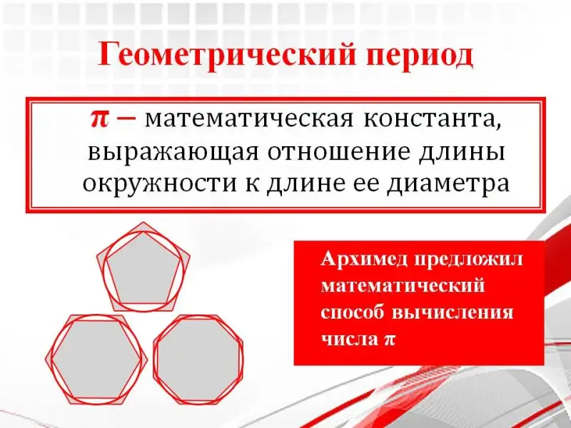 Архимед, возможно, первым предложил математический способ вычисления π. Для этого он вписывал в