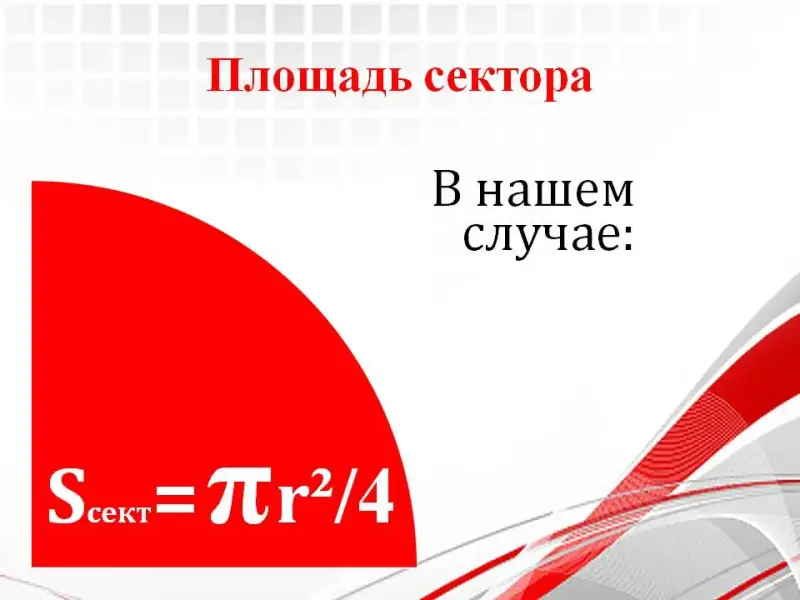 Так как мы имеем четверть круга, то площадь изображенного сектора равна: