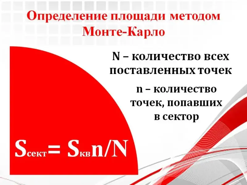 2) С каким применением метода Монте-Карло мы уже встречались? (С применением метода для оценки площадей фигур)