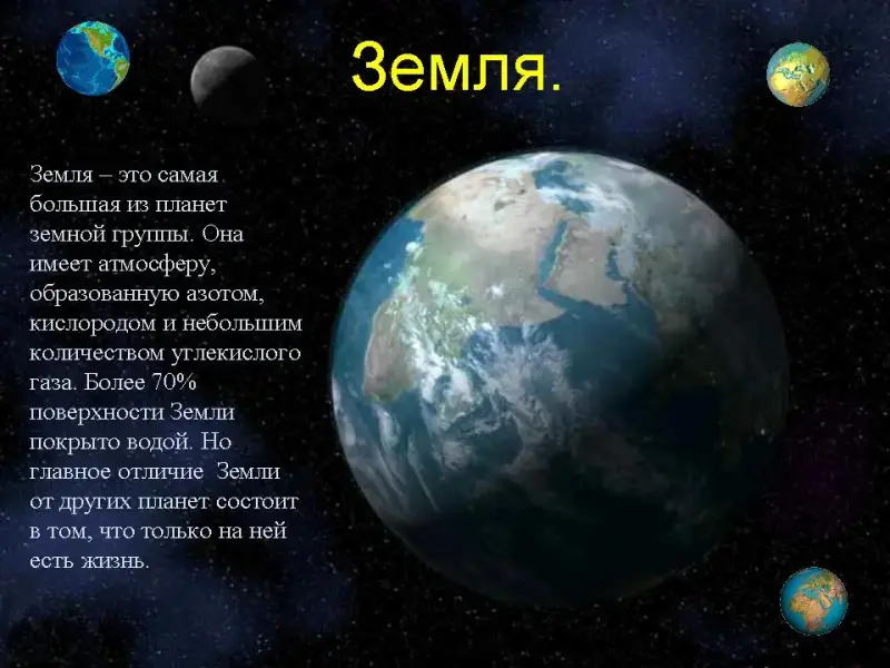 | - В чём состоит главное отличие Земли от других планет? | - Есть одна планета-сад