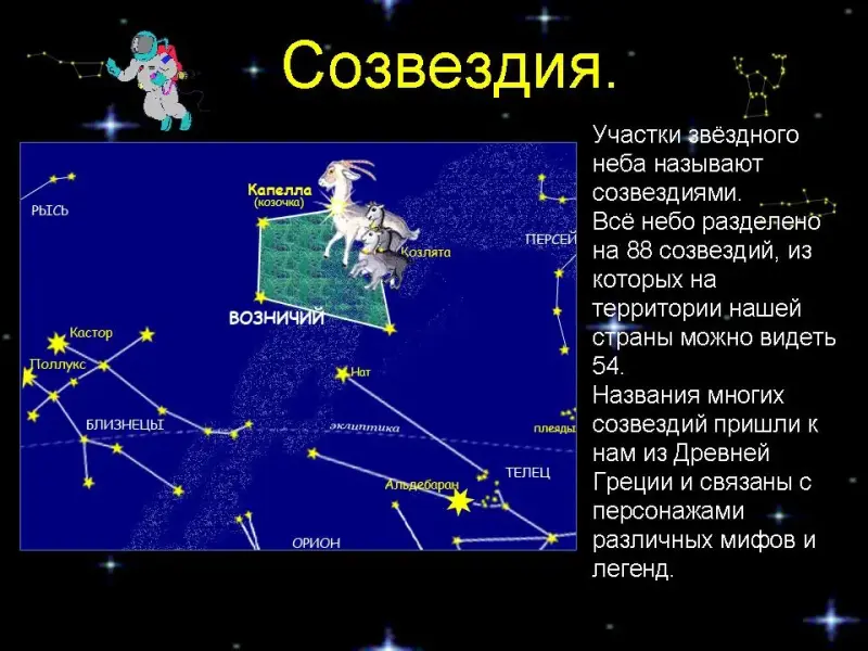 | - Что такое созвездия? Какие созвездия Вы знаете? | - Не боясь зимы и стужи,