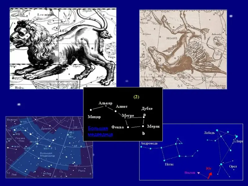 | Слайд 35 (Созвездия), Слайд 36 (Гиперссылка на ЦОР "Большая Медведица"), 37 (Орион) | |