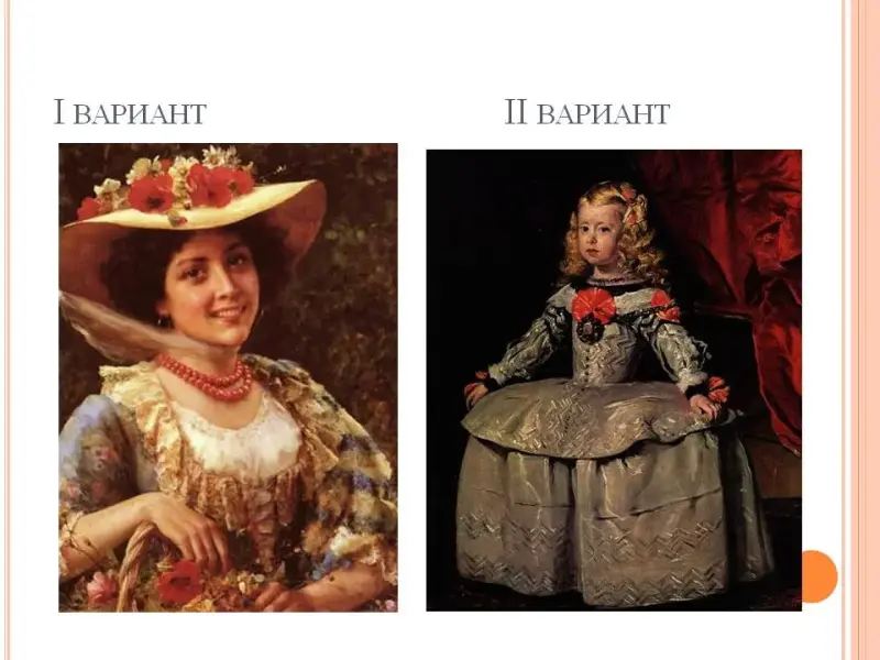 По вариантам проанализируйте 2 картины письменно. По одному проверим. (Слайд 11)