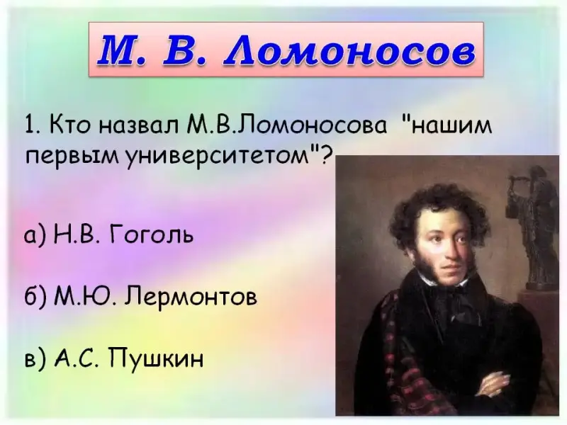 3. Кто назвал М.В.Ломоносова "нашим первым университетом"?