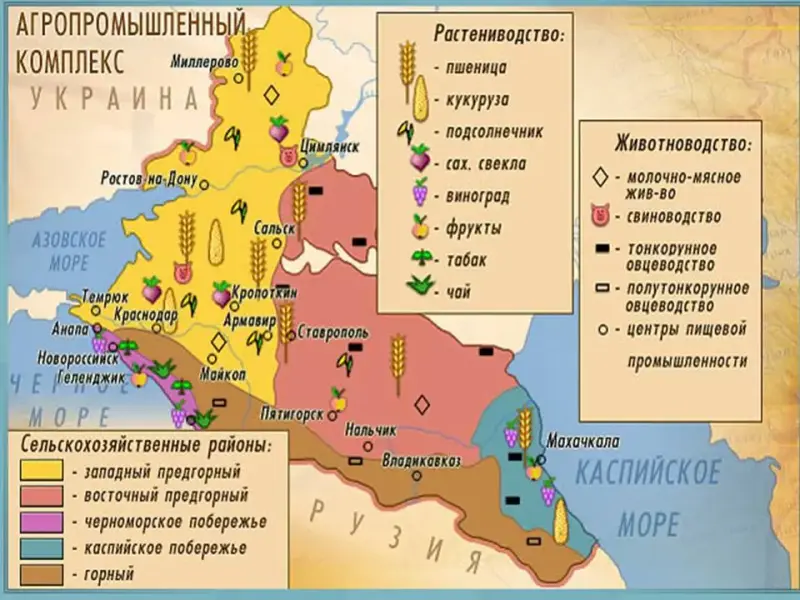 - Северо-Кавказский экономический район имеет выход к побережьям двух морей.