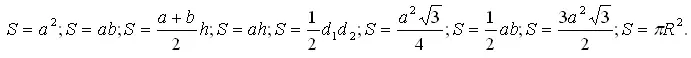 Задание: установить соответствие формул площадей с геометрическими фигурами.