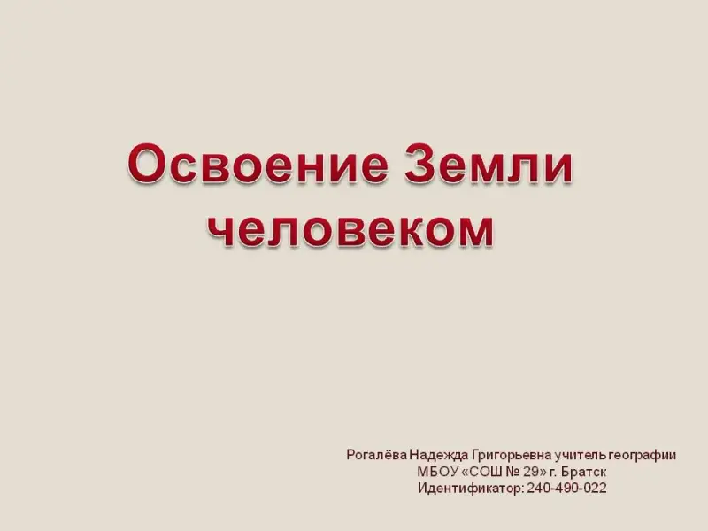 Урок географии по теме "Освоение Земли человеком: основные виды хозяйственной деятельности и ее последствия". 7-й класс