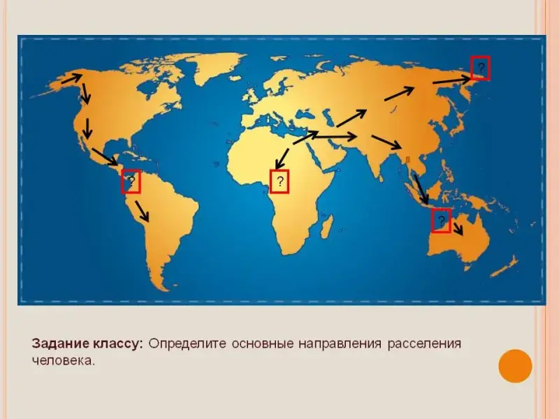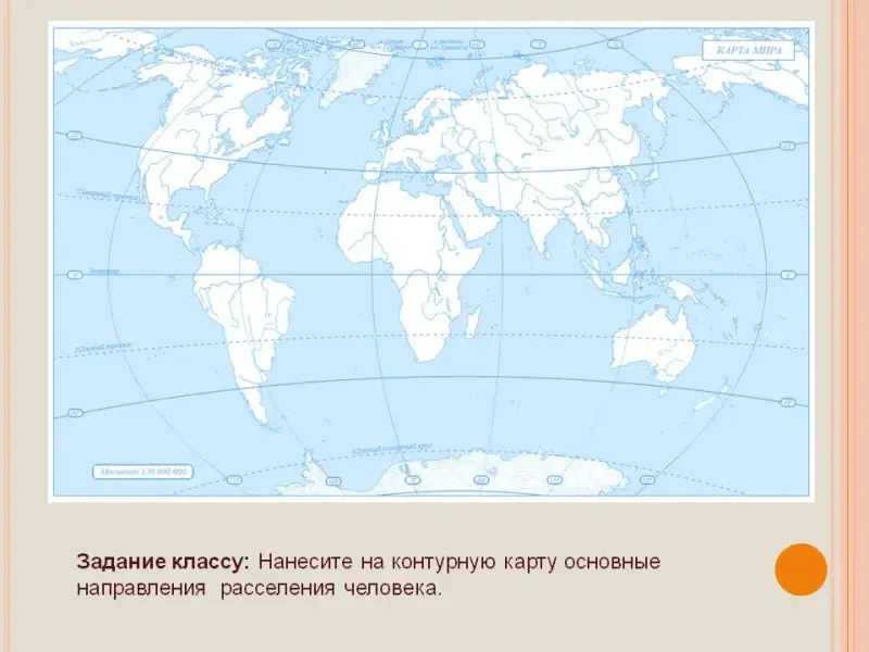 Задание классу: На контурную карту нанести пути расселения человека по материкам.