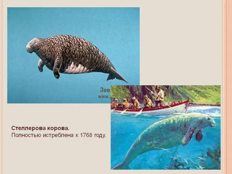 В результате хищнического промысла к 1768г. стеллерова корова была полностью истреблена