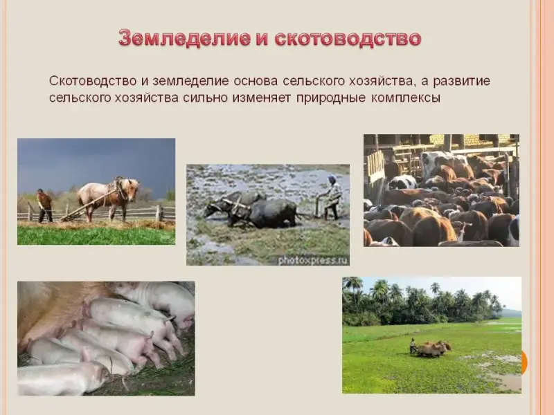 Скотоводство и земледелие основа сельского хозяйства, а развитие сельского хозяйства сильно изменяет природные комплексы.