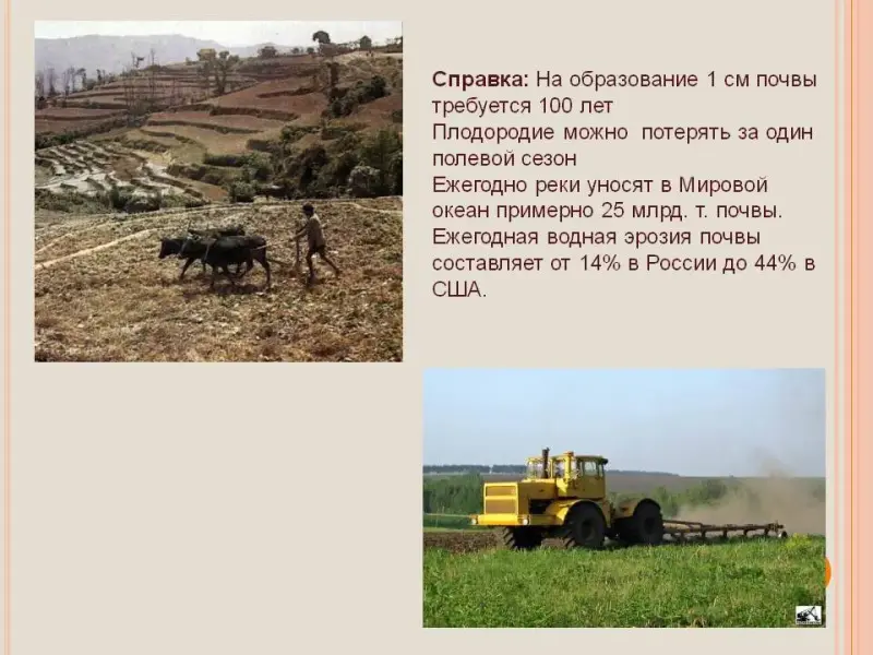 Ежегодная эрозия почвы с 14% в России до 44% в США.