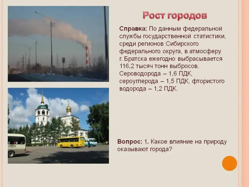 Вопрос: Какое влияние оказывают предприятия нашего города на окружающую среду? Постарайтесь объяснить.