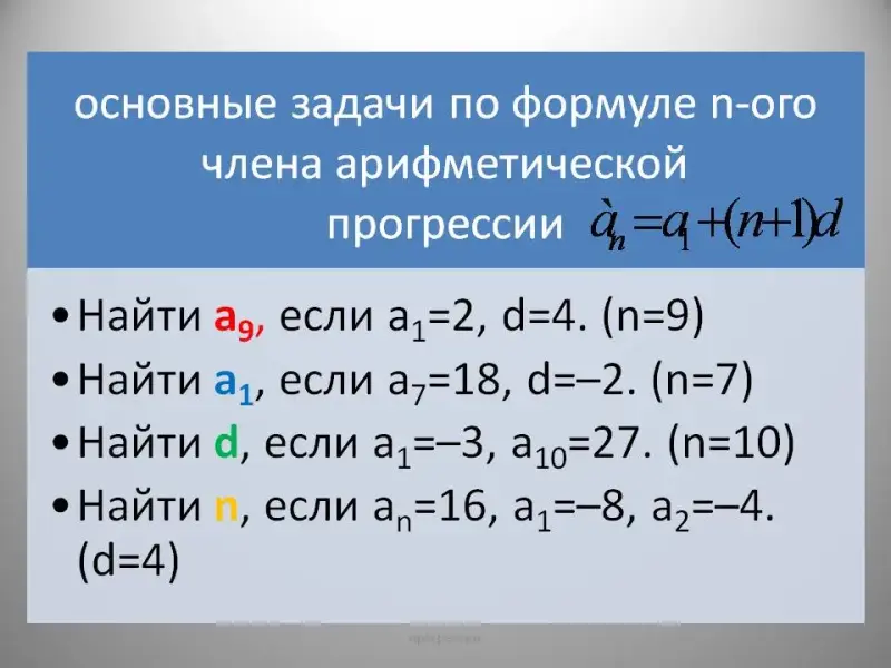 №9. Виды задач на формулу n-ого члена арифметической прогрессии.