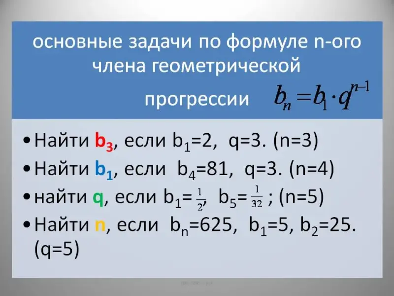 №10. Образцы задач на формулу n-ого члена геометрической прогрессии.