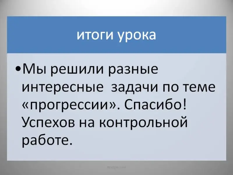Особенности итогового урока по теме «арифметическая и геометрическая прогрессии»