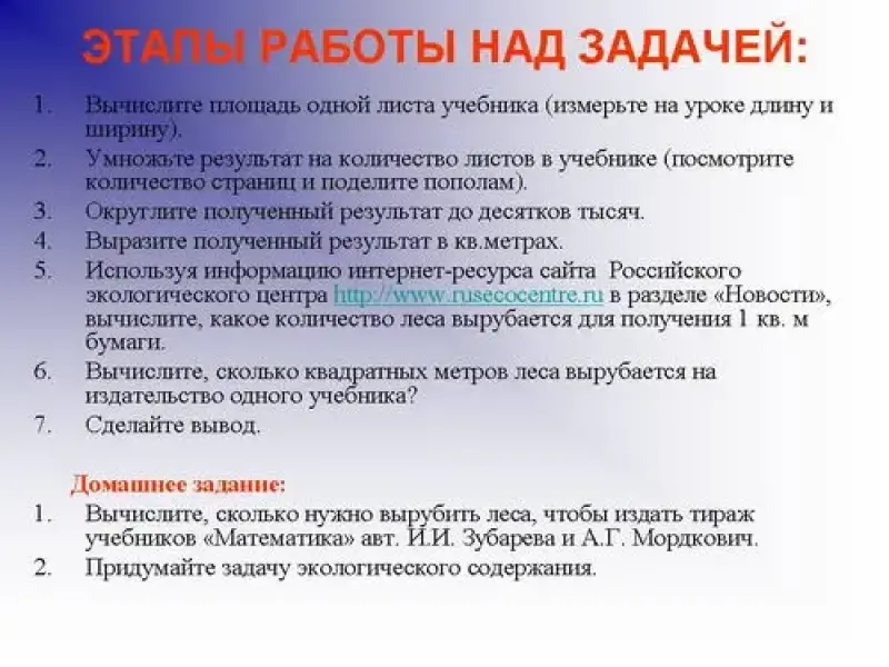 1. Вычислите площадь одного листа учебника (измерьте на уроке длину и ширину).
