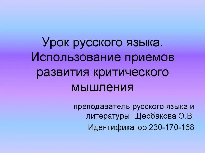 Технология: критическое мышление.