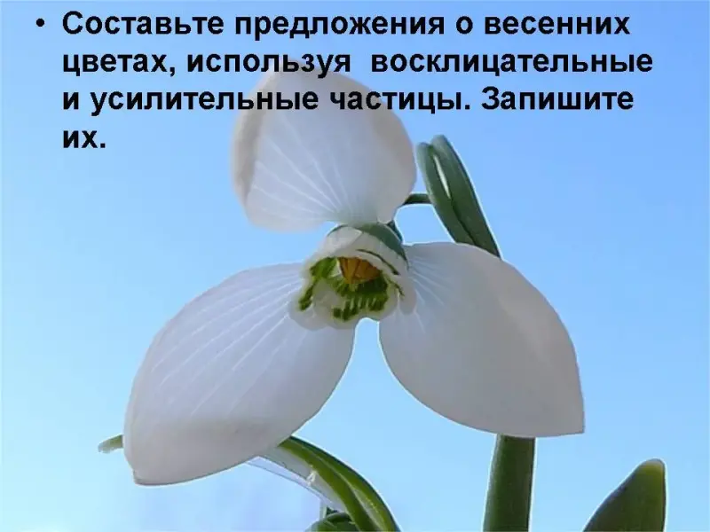 2) Составьте предложения о весенних цветах, используя восклицательные частицы. Запишите их. (2-3 примера) А вот мое предложение, в нём использованы частицы разных разрядов:
