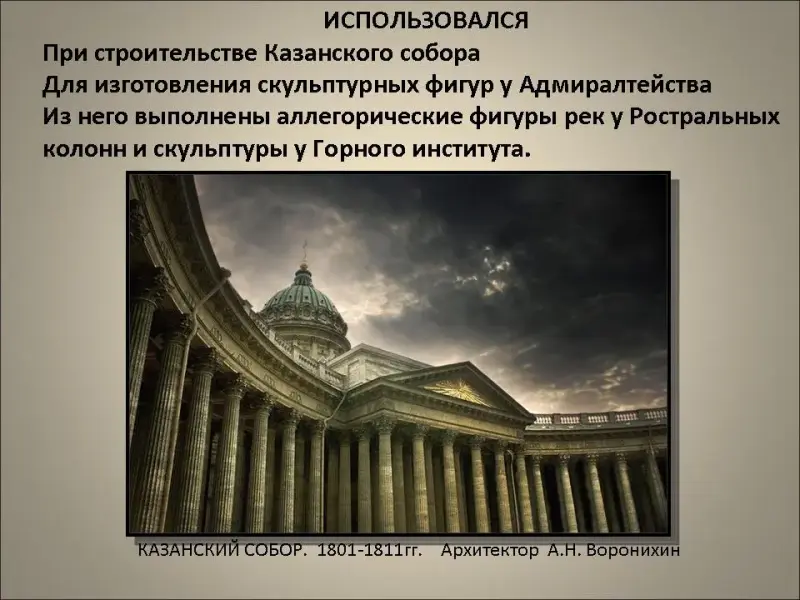 В архитектурном убранстве города применено множество видов и сортов горных пород.В центре Санкт-Петербурга имеется около трехсот объектов монументального искусства, декорированных камнем. На уроке мы познакомимся с теми, которые использовались на ранних этапах строительства города.