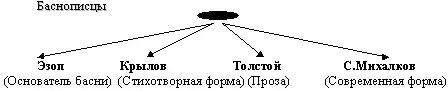 - Знаете ли вы баснописцев? (Д. Эзоп, И.А. Крылов, Л. Н. Толстой, С. Михалков.)
