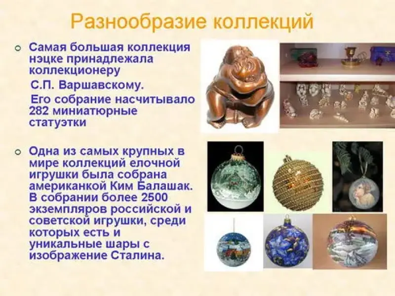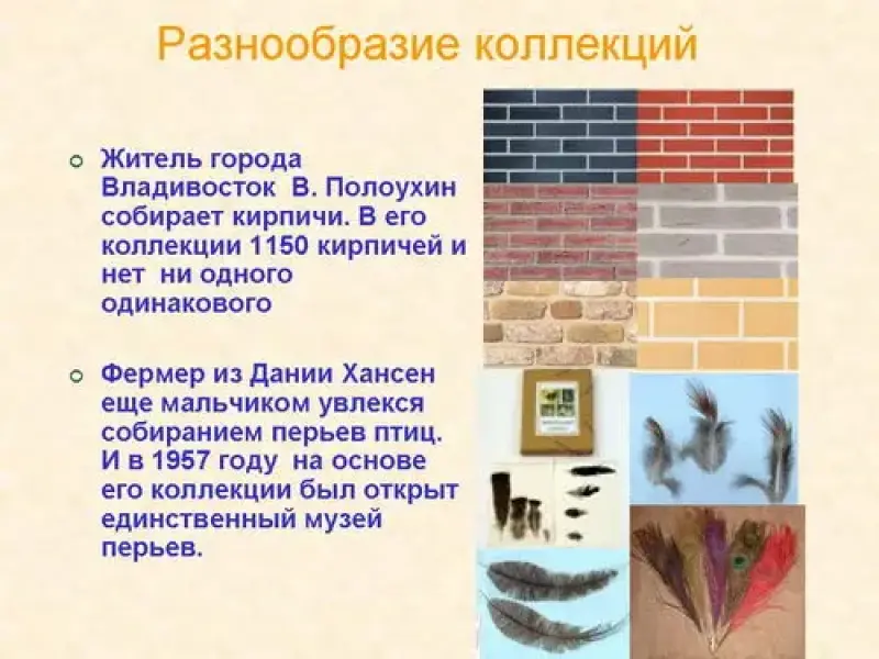 Мне стало интересно выяснить разнообразие коллекций настоящих коллекционеров. С помощью ресурсов сети Интернет я узнала много интересных фактов. Приведу некоторые из них: