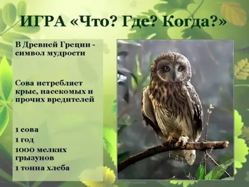 - Поэтому сова - символ передачи "Что? Где? Когда?"
