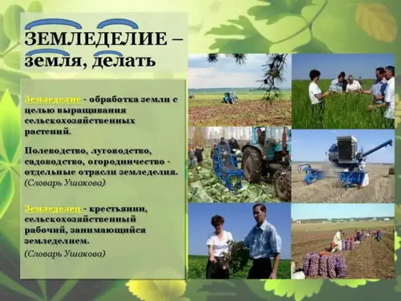 (Земледелие - обработка земли с целью выращивания сельскохозяйственных растений. Полеводство, луговодство, садоводство, огородничество - отдельные отрасли земледелия. (Словарь Ушакова)