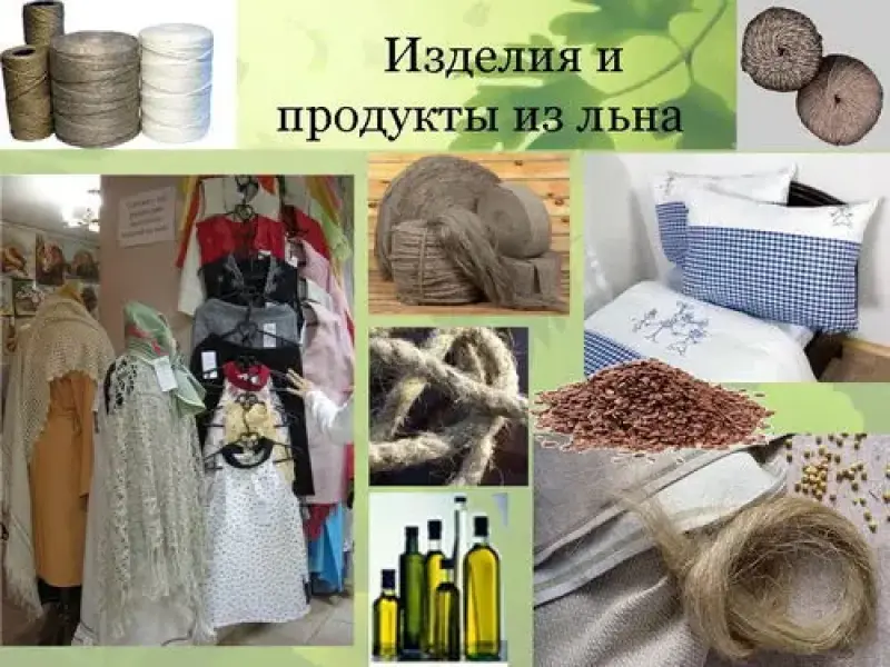 Ещё из льна можно получить масло, спирт, воск, клей, лучшие сорта олифы, лаки.