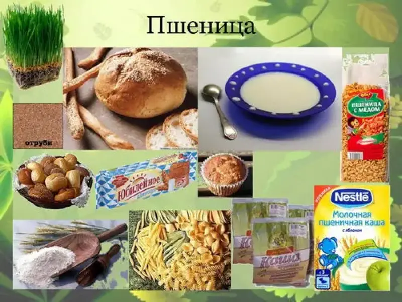(Ответы детей: Мука из зёрен пшеницы идёт на выпекание хлеба, изготовление макаронных и кондитерских изделий. Из дроблёной пшеницы получают крупы для каш. Пшеница используется как кормовая культура.)