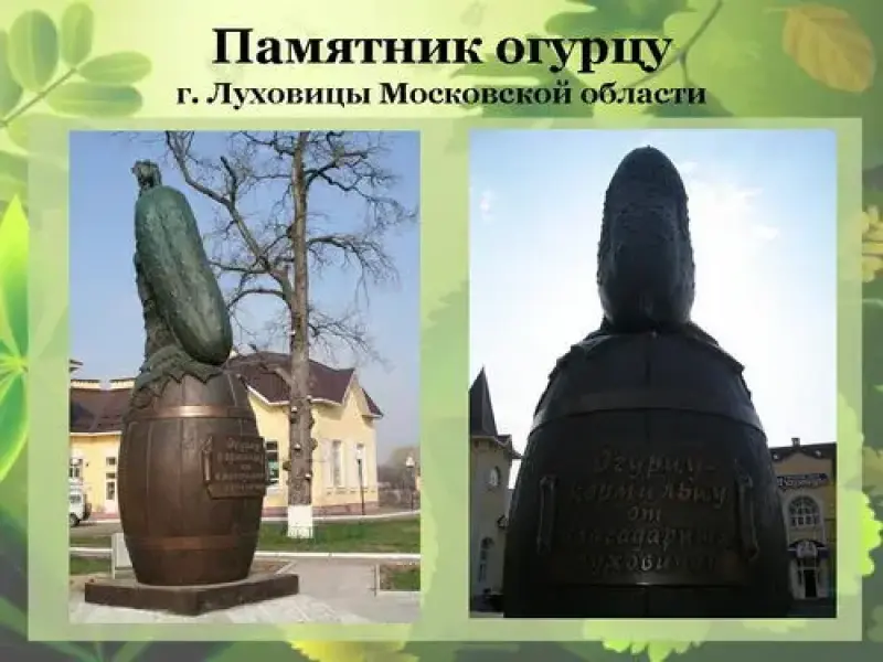 Интересно!! В городе Луховицы (Московская обл.) установлен памятник "Огурцу-кормильцу" с подписью "Огурцу-кормильцу от благодарных луховичан")