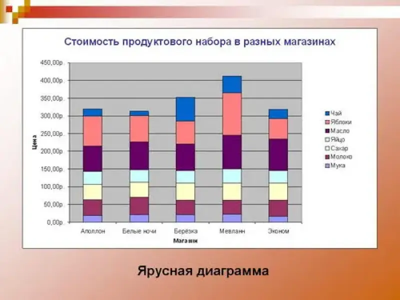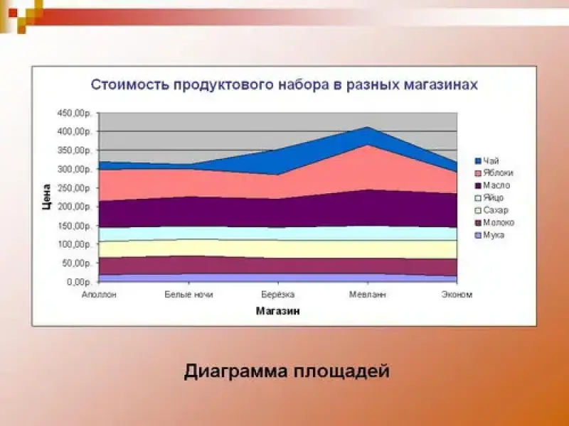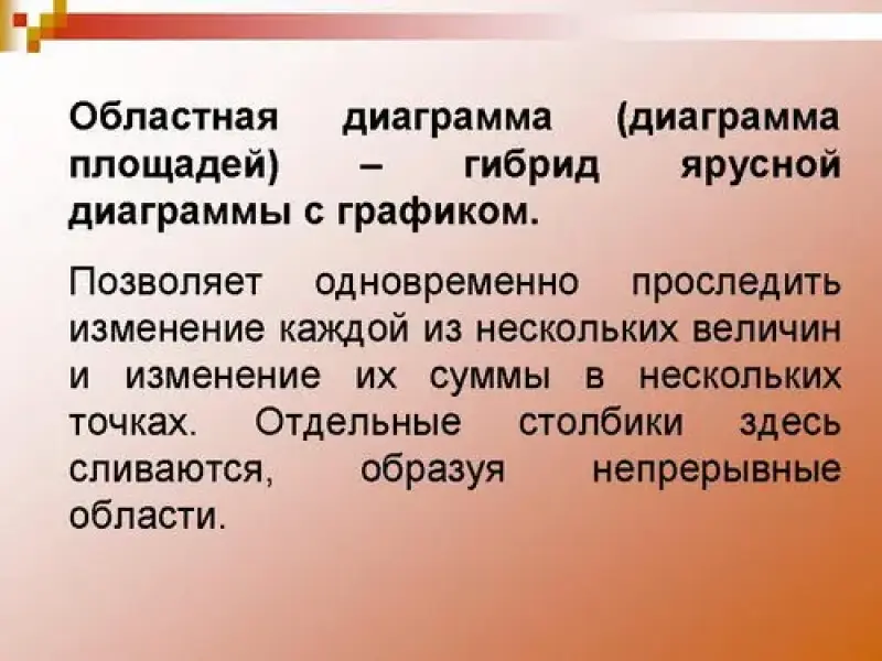 • познакомить учащихся со столбчатыми, ярусными диаграммами и диаграммой площадей;