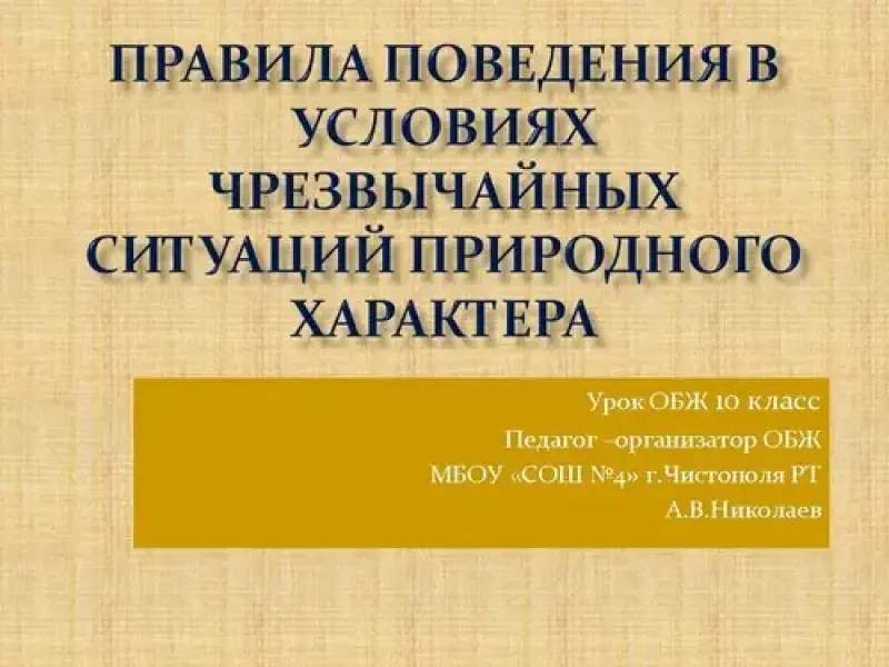 Презентация к уроку ОБЖ в 10-м классе. Тема: "Правила поведения в условиях чрезвычайных ситуаций природного характера"