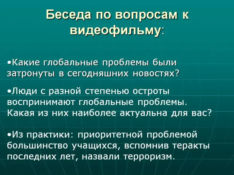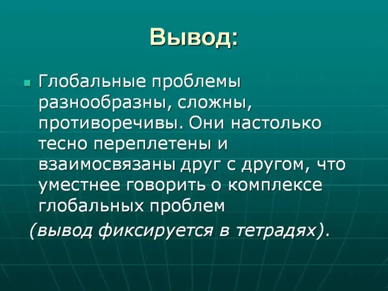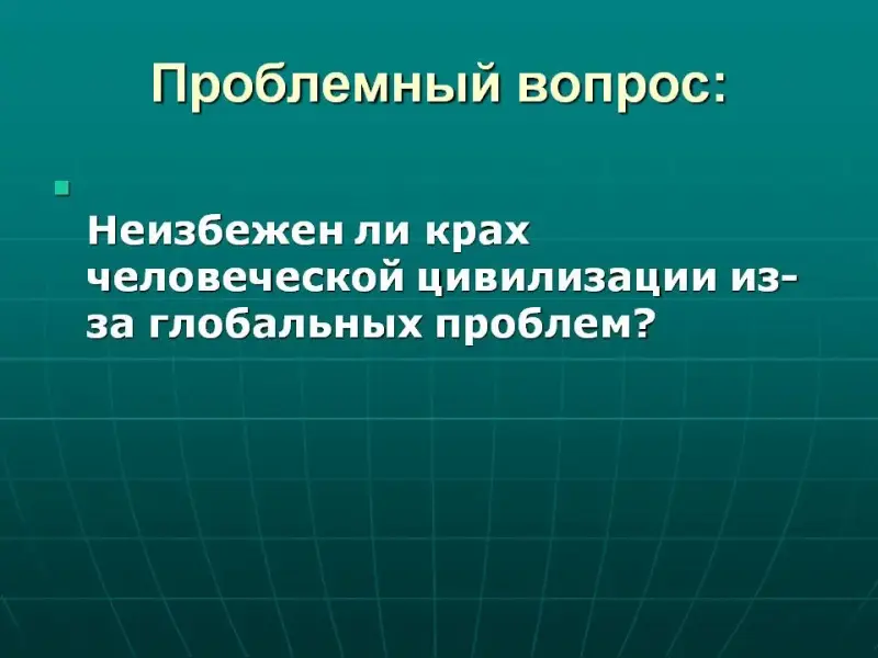 Интегрированный урок обществознания и географии. Тема: "Глобальные проблемы современности"