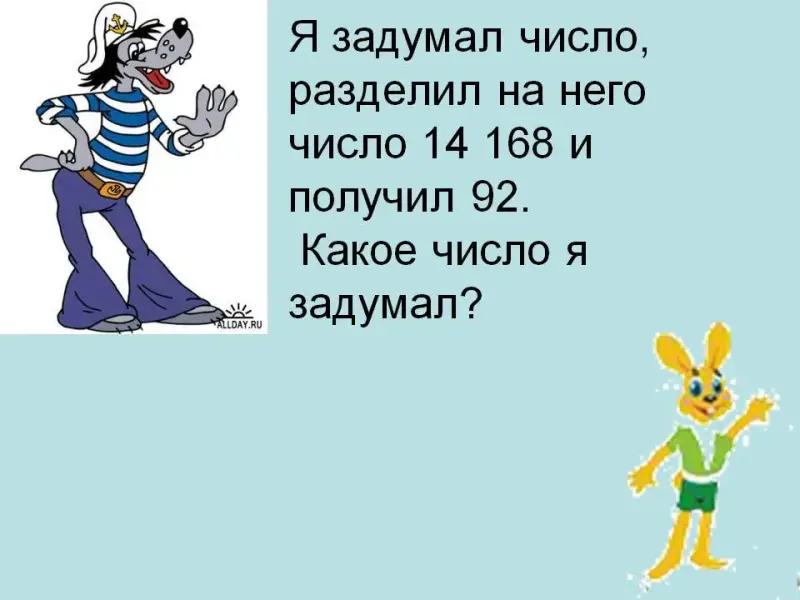 Я задумал число, разделила на него число 14 168 и получил 92. Какое число задумал Заяц?