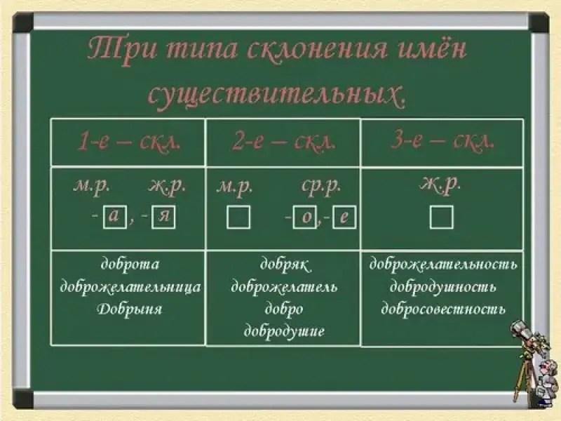 Урок русского языка по теме "Знакомство с тремя типами склонения имен существительных и способом определения склонения". 4-й класс