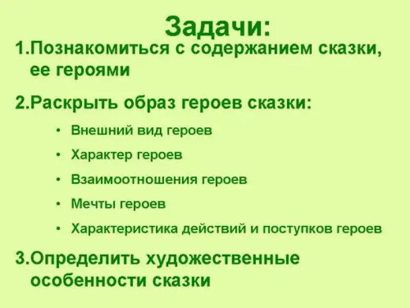 1. Познакомиться с содержанием сказки и её героями.