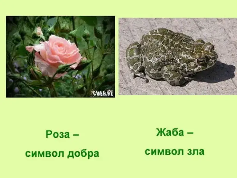 Вывод: роза - символ добра, жаба - символ зла.