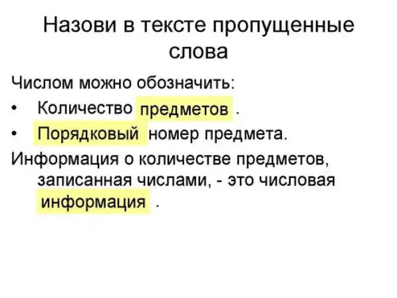 - Числом можно обозначить количество предметов и порядковые номера предметов. Это числовая информация.