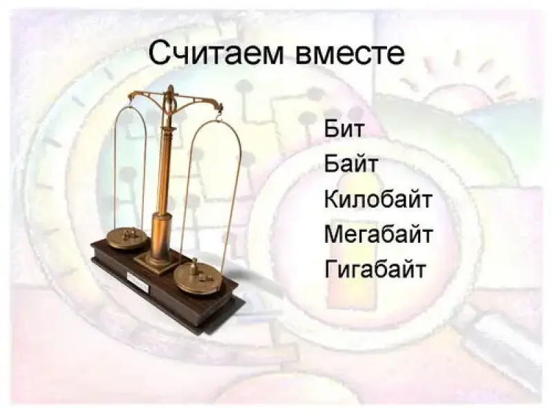 Производим подсчет набранных битов и обмениваем их на более крупные единицы измерения информации. [Презентация] (Слайд 19).