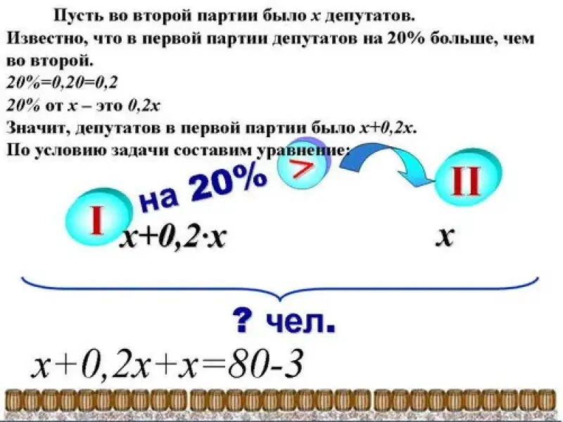 Известно, что в первой партии депутатов на 20% больше, чем во второй.