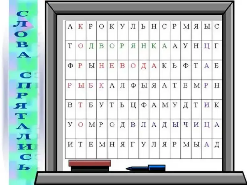 - Найдите спрятанные в таблице слова и назовите сказку, в которой все эти слова встречаются. Слова располагаются и по горизонтали, и по вертикали.