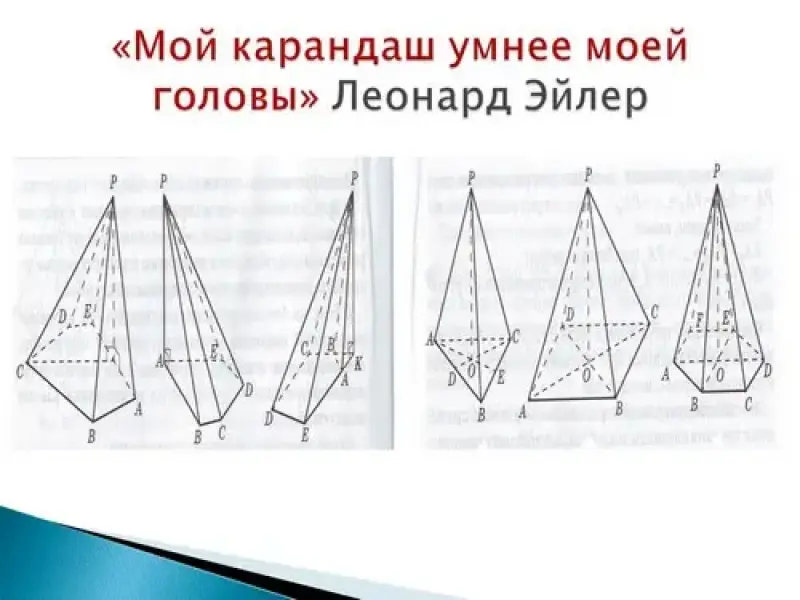 4.Учитель уточняет формулировки данного обстоятельства "основание пирамиды совпадает с центром окружности, описанной около основания" или " вершина пирамиды проектируется в центр окружности, описанной около основания.