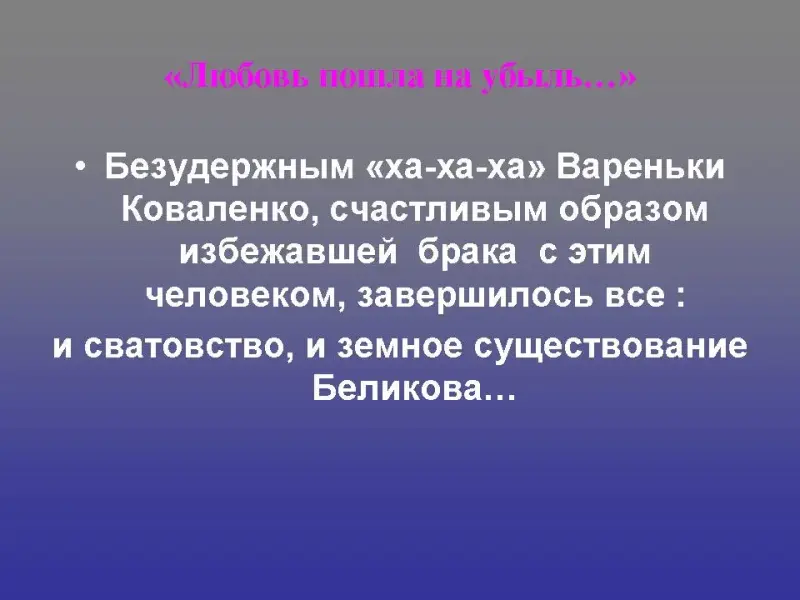 - Чем же закончилась любовь Беликова? (Ответы учащихся)