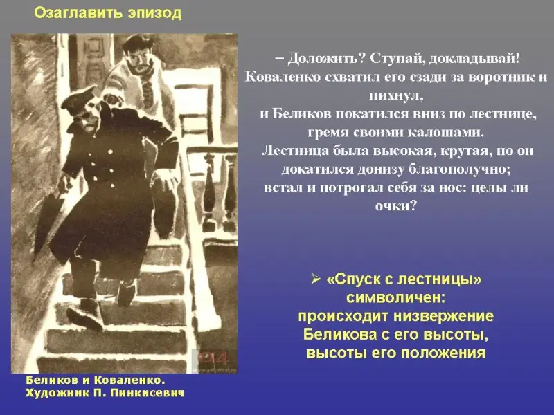 2. Озаглавить эпизод «Спуск с лестницы», прокомментировать Демонстрируется слайд 14