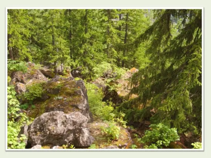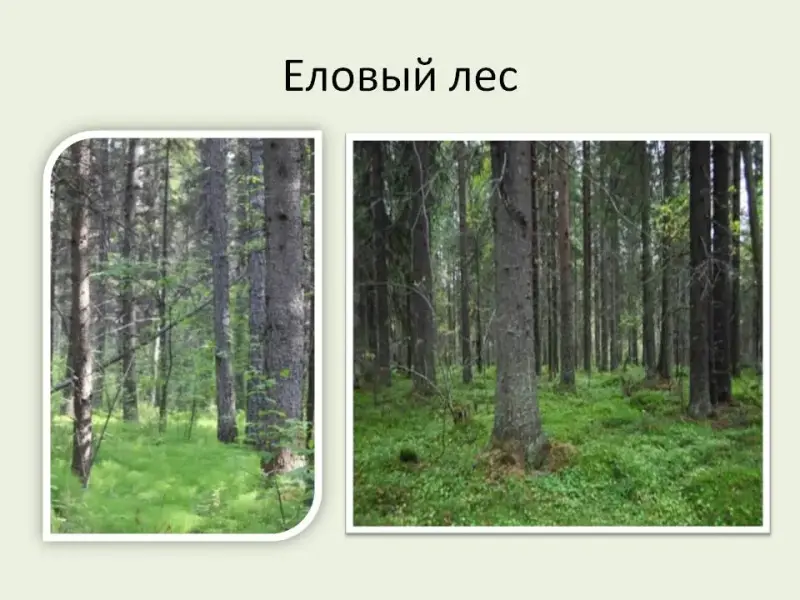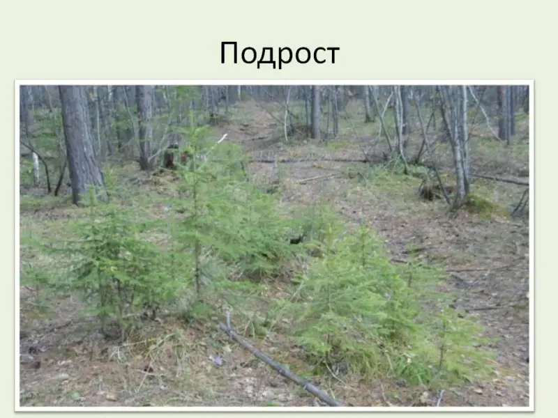 (На слайде фото: Еловый подрост)