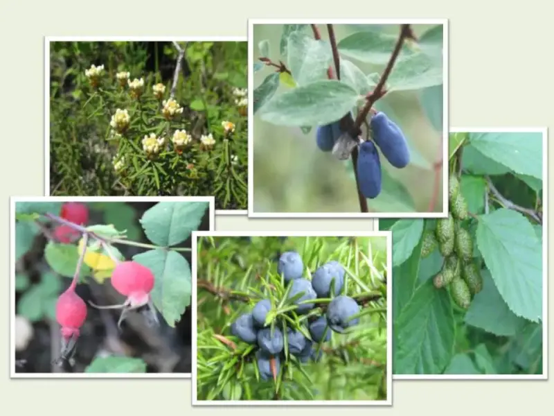 Рассмотреть перечисленные на слайдах 12 и 13 кустарники в гербарии.