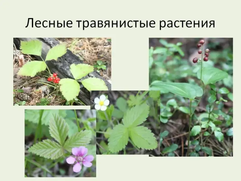 (На слайде: костяника, земляника, майник, княжника.)