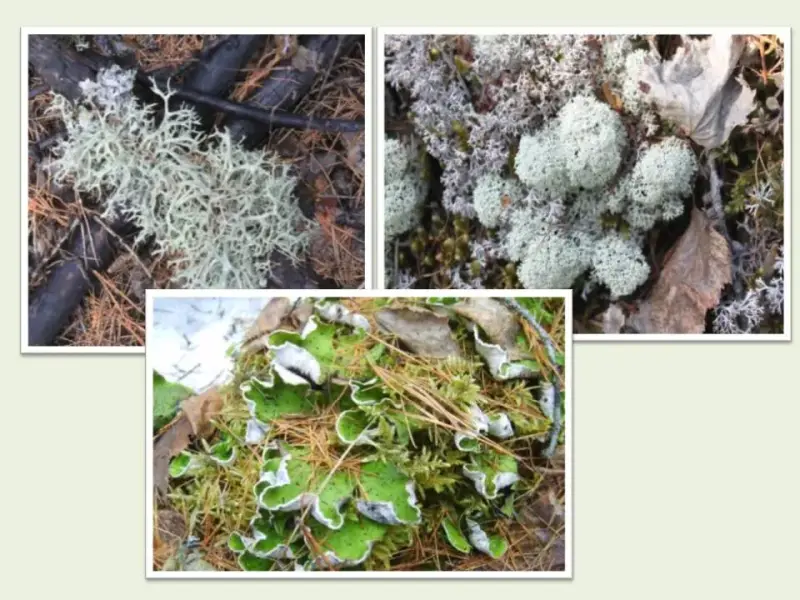 (На слайде фото: 1. Эверния сливовая, 2. Ягель. 3. Пельтигера пупырчатая)